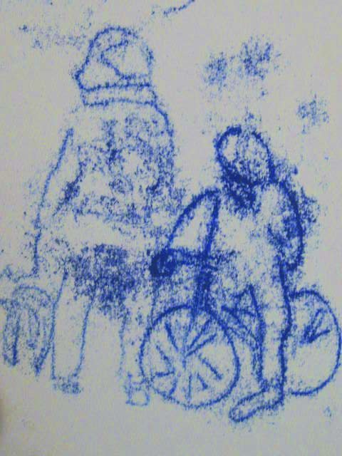 stokes croft monoprint-cyclist, man&dog