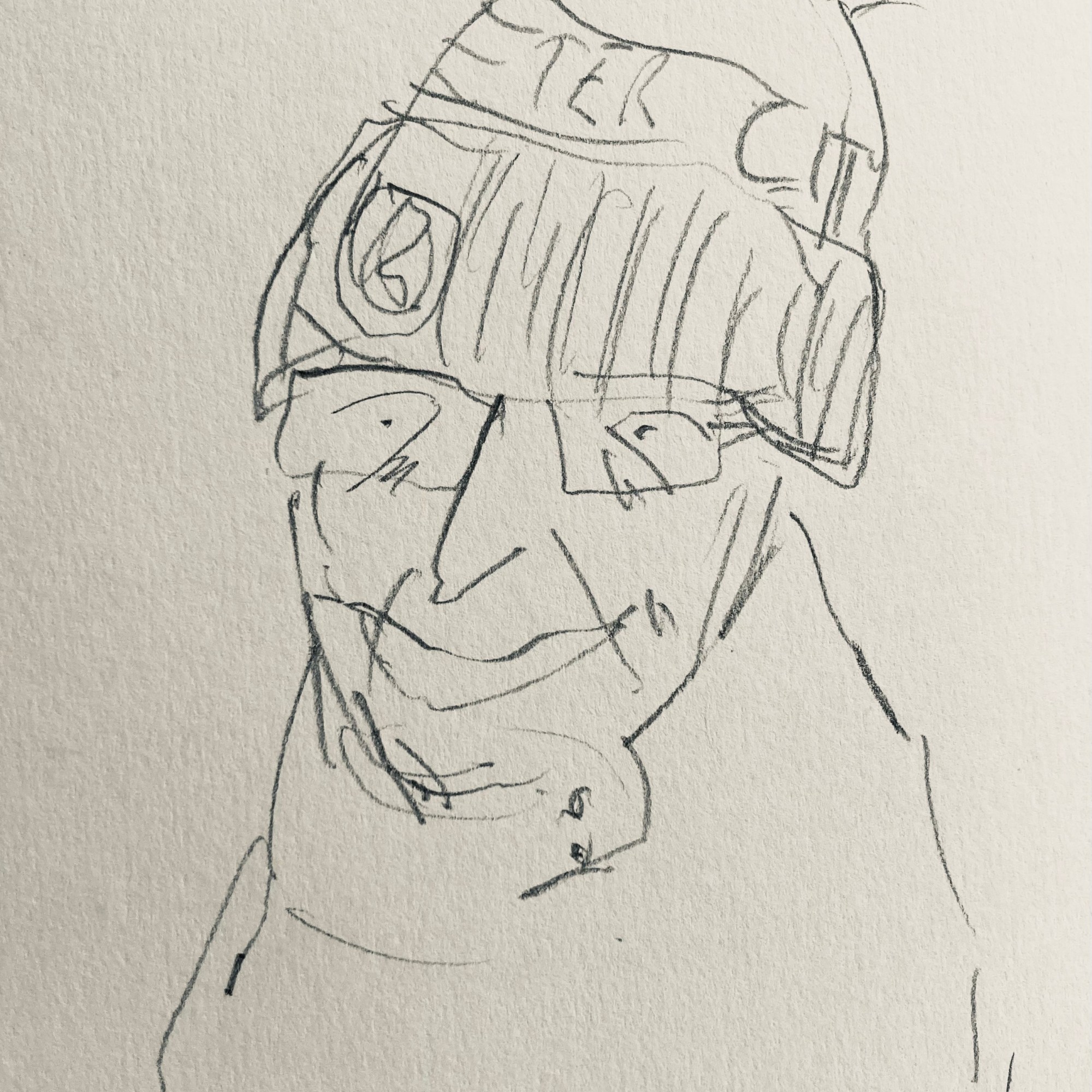 The first two pictures are pencil roughs, a first version. In the three ink images I’m having a go at adding a bit more “character” to the line – to do this I used indian ink and a bbq stick! (NB I find that if I use a ‘weird’ drawing tool it tends to slow me down and make me think about the line more.)